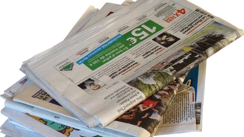 No sé si esto lo hay en todas las ciudades o incluso en todos los sectores de una ciudad, pero por lo menos acá en Wiesbaden, muchos edificios de la zona central reciben periódicos locales gratis. Los repartidores colocan un paquete en la entrada del edificio y cada habitante del mismo puede tomar un ejemplar para él.